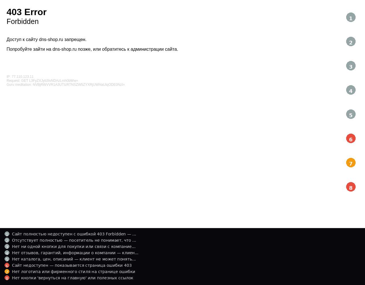 Это не рабочая страница сайта, а стандартная ошибка 403 доступ запрещён. Сейчас сайт dns-shop.ru недоступен для просмотра.